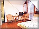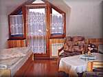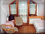 - przytulnymi pokojami 2, 3, 4 osobowymi z łazienkami, TV i jednym apartamentem.
